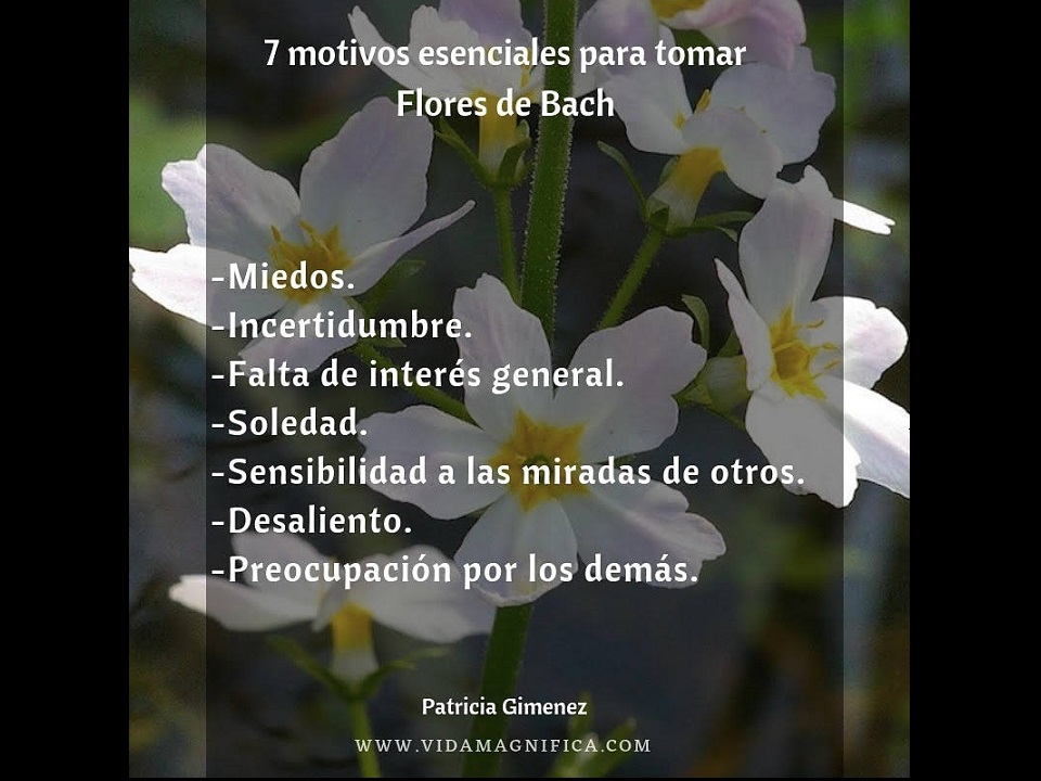 Las Flores de Bach, nos ayudan en los distintos procesos de la vida,produciendo conciencia en los hechos que nos demoran en nuestro crecimiento; así aprendemos de nosotros mismos, y avanzamos despreocupados, mirando siempre hacia adelante.